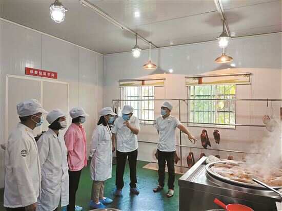实际上,中山翠亨新区驻磷溪镇工作队也是推动磷溪卤鹅产业发展的一股重要力量。工作队确定了“以科技创新引领、电商赋能,做大做强卤制和经营环节,培育龙头品牌企业,适当拓展养殖和冷链运输等上下游产业”的产业发展路径;对接仲恺农业工程学院科技特派员团队,将卤鹅的保质期从3天延长至1个月;鼓励镇内卤鹅企业按照规范化、规模化、标准化厂房扩大生产,打造现代工艺流程下的“卤鹅加工新方式”;积极推动卤鹅协会的成立,为产业发展提供组织基础。