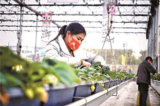 ■吊挂栽种的草莓可以让工人不必弯腰工作,提高了工作效率,市民采摘也更方便。