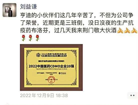 作为国内第二大布洛芬原料药企业,亨迪药业近日受到市场资金追捧,股价一度涨超两倍。而这家公司的实控人,正是著名收藏家刘益谦。据资料显示,2019年,刘益谦以1.8亿元人民币全资收购亨迪药业。有人笑称,这个价格还不如他2014年以2.8亿港元拍下的鸡缸杯。刘益谦在自己的朋友圈介绍,湖北亨迪药业股份有限公司是全球六大布洛芬原料药厂家之一,也是布洛芬原料药与制剂一体化生产企业。他随后又发朋友圈称“亨迪的小伙伴们这几年辛苦了,不但为公司争了荣誉,近期更是三班倒,没日没夜地生产抗疫药布洛芬”。