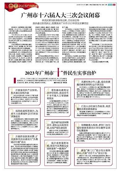 1月9日,广州市十六届人大三次会议举行第三次全体会议,市人大代表通过投票表决,从12件候选民生实事中差额票决出2023年广州市十件民生实事,事关食品安全、教育、实习就业、就医等方方面面。