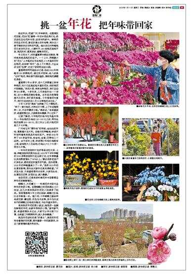 临近年关,花城广州,年味渐浓。在荔湾区花田里,花农们忙着将一年的辛苦成果打包,然后送往各处花卉市场,送到市民家中。鲜艳芬芳的各式年花,象征好意头的年桔等,将为这个春节增添欢乐祥和的气氛。海北东石村种植桃花已有百年历史,小寒时节,800亩桃花竞相开放,桃花灼灼、落英缤纷,蜜蜂采花忙。
