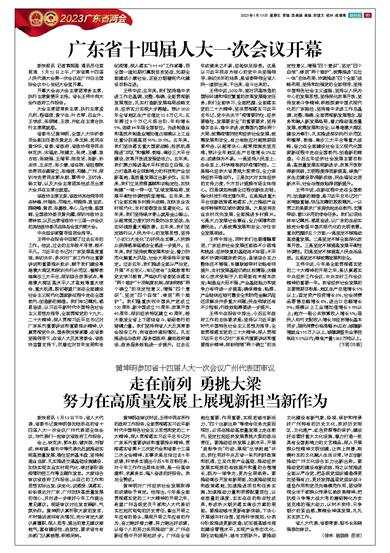 黄坤明对广州经济社会发展取得的成绩给予肯定。他指出,今年是全面贯彻落实党的二十大精神的开局之年,希望广州各级党员干部和人大代表切实扛起沉甸甸的历史责任,拿出开局之年应有的势头,展现开局之年应有的作为,奋力跑好接力赛,努力跑出好成绩,以每个人的努力共同推动广东、广州在新征程中开好局起好步。广州在全省地位重要、作用重要,实现老城市新活力、“四个出新出彩”等使命任务光荣而艰巨,必须在推动高质量发展上走在前列,坚定扛起经济发展勇挑大梁的政治责任。要推动经济发展上新水平,开展“竞标争先”行动,展现“比学赶超”状态,抓住用好中央及省一系列利好政策和机遇,立足优势产业基础,推动经济发展实现质的有效提升和量的合理增长,既为一域争光,更为全局添彩。要推动南沙开发有新局面,加速推动规划和政策落地,加速推进项目和任务实施,加速推动力量和资源配置到位,以有质量的速度、实实在在的标志性成果,形成热火朝天落实南沙方案的局面。要推动城市更新有新突破,下决心开展城中村治理,坚持科学规划,分类分阶段推进更新改造,切实提高城市规划建设管理水平,实现产业形态优化、居住功能提升、城市文明跃升。要推动文化建设有新气象,珍视、保护和传承好广州特有的历史文化,抓好历史街区、文化遗产、红色资源等的保护,建设好运营好重大文化设施,着力打造一批具有全国影响力的文艺精品,深入开展群众性精神文明创建,让向上向善、刚健朴实的文化融入生活日常,守正创新推动广州文化综合实力出新出彩。要推动党的建设有新成效,持之以恒推进全面从严治党,把各级党组织锻造得更加坚强有力,更好发挥基层党组织战斗堡垒作用和党员先锋模范作用,团结带领全市干部群众传承弘扬改革精神,把抗疫斗争等大战大考的磨砺转化为攻坚克难的强大动力,以时不我待、只争朝夕的紧迫感,聚精会神谋发展,扎扎实实抓工作。