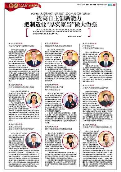 1月14日,广东省十四届人大一次会议开启代表通道,九位省人大代表亮相“代表通道”,他们围绕制造业当家、科技创新、医疗健康、发展全过程人民民主等主题,传递民情民意,畅谈履职心声。