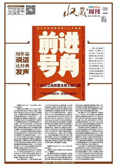为深入学习宣传贯彻党的二十大精神,广州市文联、广州艺术博物院倾力筹办的“前进号角——广州文艺高质量发展主题大展”将于2023年1月16日在广州艺术博物院负一层国际交流展厅开幕,广州市文联主席李鹏程接受收藏周刊记者采访时表示,“用作品说话,让经典发声。”