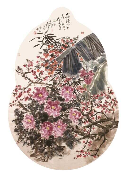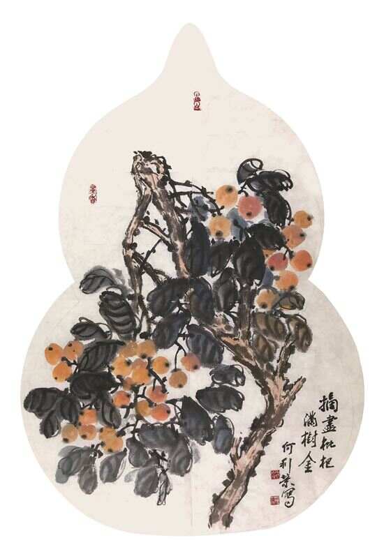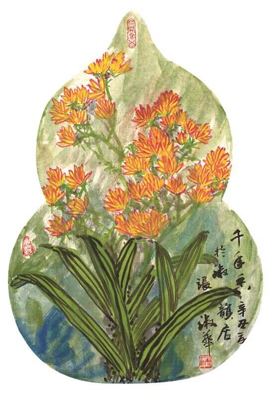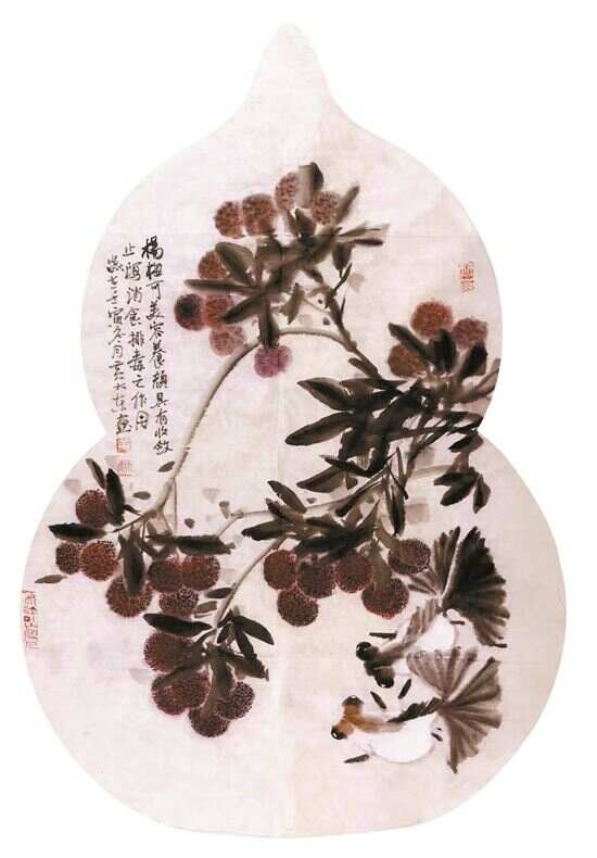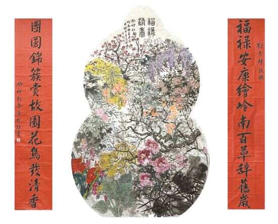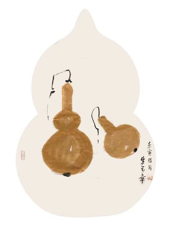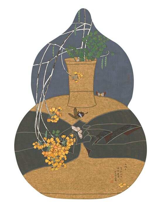 更为特别的是,此次展览通过“以葫芦装百草”这种雅俗共赏的方式呈现,所有画作均装裱为葫芦形状的镜片。据资料显示,考古学家曾在已有七八千年历史的河姆渡文化遗址考古挖掘中便发现了葫芦的种子。在《国风·豳风·七月》中就有记载:“七月食瓜,八月短壶。”葫芦是吉祥物,在民间,葫芦谐音“护禄”“福禄”,古人逢年过节都会在家中悬挂葫芦。