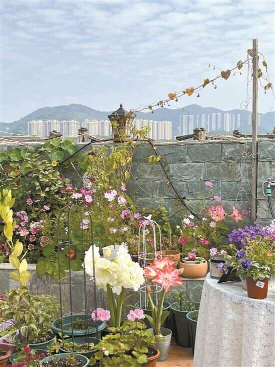 好园丁有了用武之地。胡女士大展身手,月季、三角梅、茶花、兰花、绣球……她在私家花园里种了一百多种花卉。靠着一步步摸索,从“新手小白”成长为“养花大户”,还结识了一群志同道合的花友,大家平时互相交流养花心得,并交换自己种的花。“之前我养不好月季,就翻了很多资料,还去问了花友,自己琢磨着怎么换土和修剪。”现在的胡女士谈起养花,已是侃侃而谈:“因为楼顶光照足、比较晒,所以一些草花只能从秋天开始种,可以开到来年5月,而月季、三角梅、茶花则常年可种,兰花、绣球、朱顶红不需要多晒太阳,比较适合养在室内。”