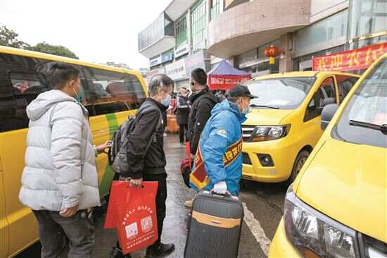 春运期间,四川省富顺吉祥道路运输有限公司投入运力,从广州、深圳、中山等地接运5000余名富顺籍返乡农民工。这些农民工抵达富顺县客运中心后,即可转乘“金通工程”小黄车返回乡镇。“一站式”接驳服务解决了返乡人群“最后一公里”的烦恼。
