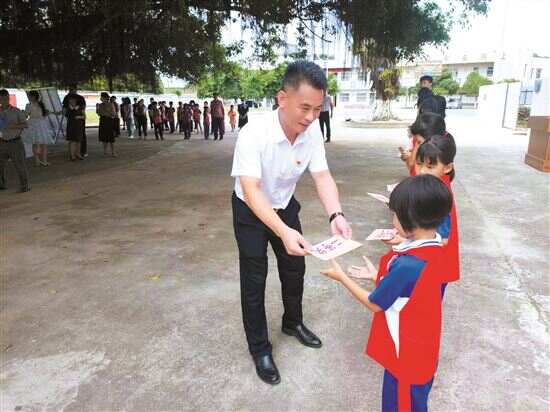 ■工作队很关注教育发展,陈红扬为获奖小学生送上奖学金。