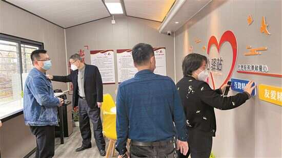 ■黄文丰(左一)在查看爱心驿站情况。