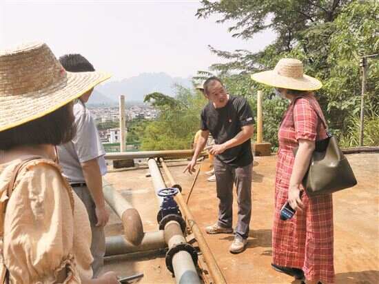 ■钟余松给相关人员讲解青莲镇里用水问题。
