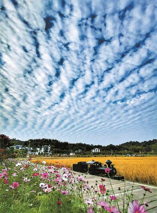 广州从化区良口镇米埗村,金黄色稻田中,一列复古蒸汽小火车慢悠悠地穿梭其中,这里是稻喜湾温泉民宿小镇的核心区域。过年期间,这儿的民宿价格是1300元起,平时也要七八百元。价格不低,但胜在有特色,入住率颇喜人。打造不同主题的特色小镇,正是从化在乡村振兴新农旅方向上探索的一个缩影。