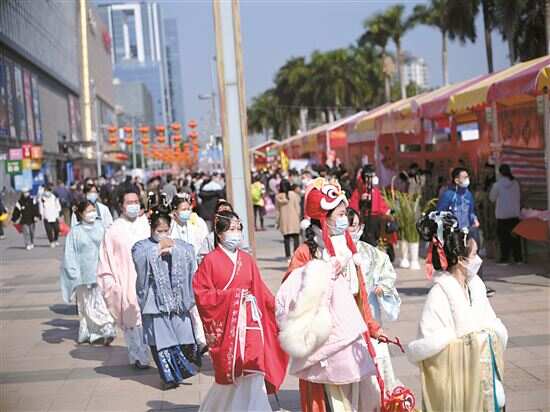 民俗技艺体验、穗港澳青年艺术交流季、小林漫画展……1月19日至1月28日,市青年宫连续推出多项新春活动,邀请市民兔年开新礼,逛西湖花市的市民游客除了感受新年花香,还有浓浓文化味环绕。而在白云花市,“桃花雅集”进花市、国潮汉服巡游、诗词灯谜、投壶游园弘扬传承中国传统文化,首设科技展馆展陈“黑科技”产品、VR沉浸式云赏美景展现现代科技赋能城市治理,传统文化与现代科技碰撞融合,营造出老城市新活力、欢乐祥和的浓厚节日氛围,成为今年的独特看点。