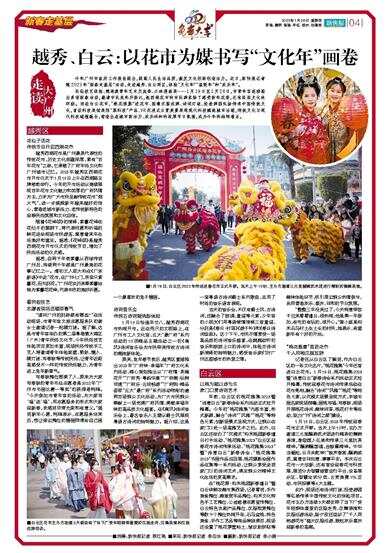 今年广州市政府工作报告提出,提高人民生活品质,激发文化创新创造活力。近日,新快报记者随2023年“新春走基层”活动,走进越秀、白云两区,体验“文化年”“温暖年”和“欢乐年”。