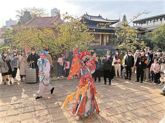 从1月16日至25日,荔湾区举办百场演出一直陪伴市民游客过大年,市民游客可以在悠扬的曲艺声中,游览西关传统建筑,体验传统广府年俗,了解各式传统非遗文化,感受非遗的魅力,并将非遗文化“带回家”。