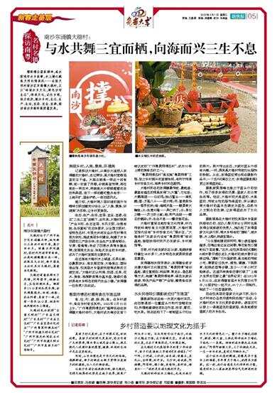 撑粉撑出疍家精神,咸水歌唱好水乡故事,水上婚礼赋能文明社情家风……全国文明村南沙区东涌镇大稳村,正以“岭南水乡文化,绿色沙田生态”,传承文化,记住乡愁,助力经济,振兴乡村,生态、生产、生活,宜居、宜业、宜游,推动南沙东涌的高质量发展。