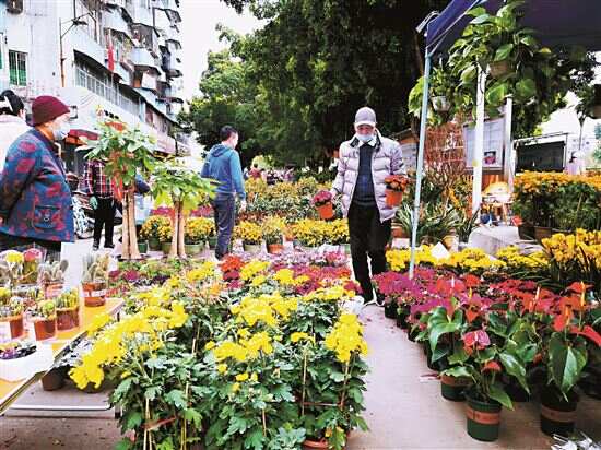 红的花,绿的叶,姹紫嫣红,绿意盎然,广州市花都区赤坭的乡村花市呈现出一派喜气洋洋的节日气氛。