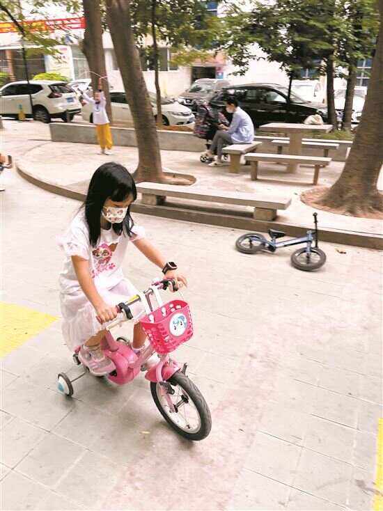 好动的乐乐每天都会要求我带她下楼去骑单车或者跳绳,骑单车是她一项爱好,每天下课时间,楼下的小孩子都会聚在小区的空地上骑车。在疫情期间乐乐还参加了年级的网上运动会,与其他小朋友一起比赛一分钟内谁跳绳的次数多。
