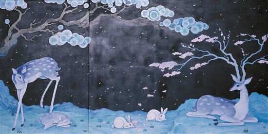 张智海《小作坊里的父与子》通过社会学微观角度展现中国父爱和中国家庭:父亲希望儿子能够独当一面,同时也不忘默默注视着他,中国父亲对孩子的关心往往不露声色却无微不至。牟林童的《呦呦鹿鸣》用油画形式描绘中国传统国画意境,通过“鹿”的形象隐喻中国家庭:父亲在远处守护着家,母亲在一旁呵护着幼子。无论外面有多大的风雪,父母总会给孩子营造一个温暖的环境,正是中国千家万户的缩影。