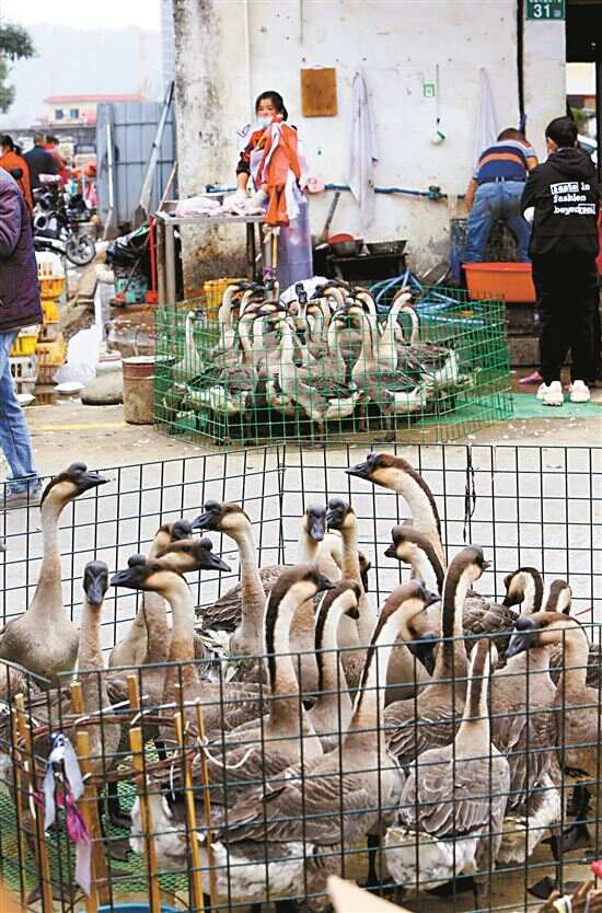 ■从化鳌头墟的鸡鸭鹅摊档非常热闹。
