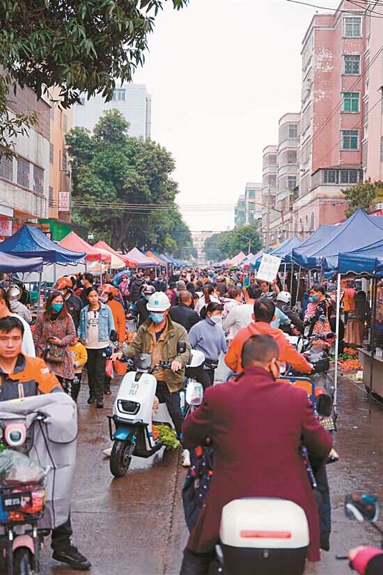 2月4日上午8点半,新快报记者来到两龙墟,看到道路两旁有一排排帐篷和地摊,沿着街道向前延绵数百米,一眼望不到边,场面十分壮观。记者在106国道和两龙南街交汇的路口吃了一碗7元的卤粉。“我们做早餐的凌晨3点多就出来了,这里一般早上8点左右人流量最大。”粉档老板娘介绍,平常9点左右,两龙墟的人流就开始减少,而她一般9点半就收摊了。