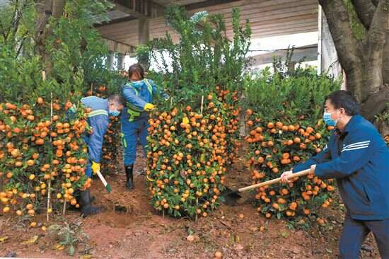 新快报讯 记者李佳文 通讯员成广聚 程轩 梁静仪 毛婕报道 元宵节过后,广州市迎来废弃年花年桔处置高峰期。今年全市共设737个临时收集点,方便市民分类投放废弃的年花年桔。新快报记者巡城发现,部分区城管部门把年桔进行复种重新“上岗”,成为装点城市的绿色风景线,也有年桔年花产地组织对花泥、花盆、果实进行分类处理实现再次利用。