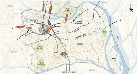 项目位于番禺区西北部,长隆片区东南部,新光快速以东,汉溪大道以北,东侧紧邻万博商务区,西侧距离广州南站约6.5公里,南侧距离番禺区政府约8.5公里。项目紧邻地铁7号线和3号线、18号线的换乘站汉溪长隆站和南村万博站。