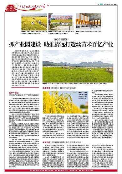 ■清新区正借力丝苗米产业园建设,打造清远丝苗米全产业链现代化开发先行区。