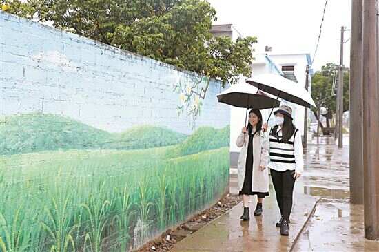 ■湛江雷州市南兴镇步月村的村居墙壁上,充满诗情画意的田园彩绘让人赏心悦目。