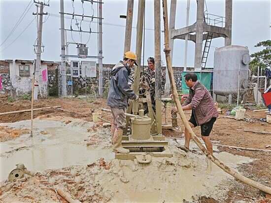 ■广州驻湛江市遂溪县建新镇工作队发动后方帮扶单位为建新初级中学打深井,解决学校用水难题。