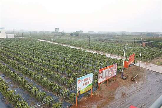 ■长青农业在湛江市遂溪县建新镇那仙村的火龙果基地,种植有1200亩火龙果。