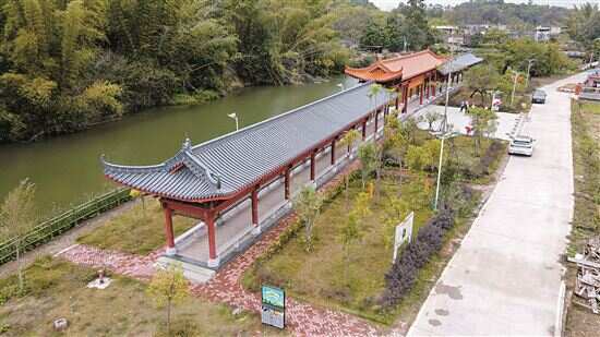 ■从无人机俯瞰,梅州市梅县区畲江镇连江村邹韬奋纪念长廊一带景色优美。