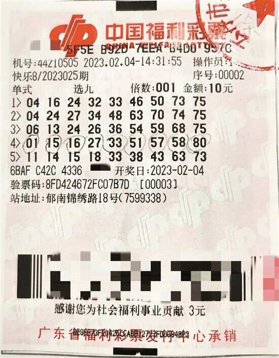 广东中出的1注一等奖落户东莞市,中奖彩票是一张自选10元5注单式票,由南城区城市立方110号的44101173投注站售出。
