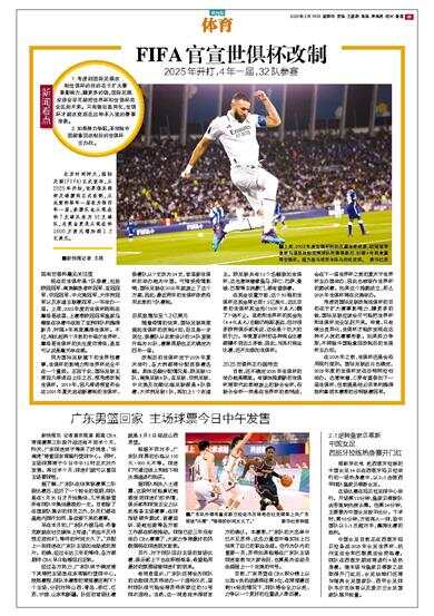 北京时间昨天,国际足联(FIFA)正式宣布,从2025年开始,世界俱乐部杯足球赛将正式改制,从此前的每年一届改为每四年一届,参赛队也从现在的7支球队改为32支球队,总奖金更是从现在的1600万美元增加到1.2亿美元。