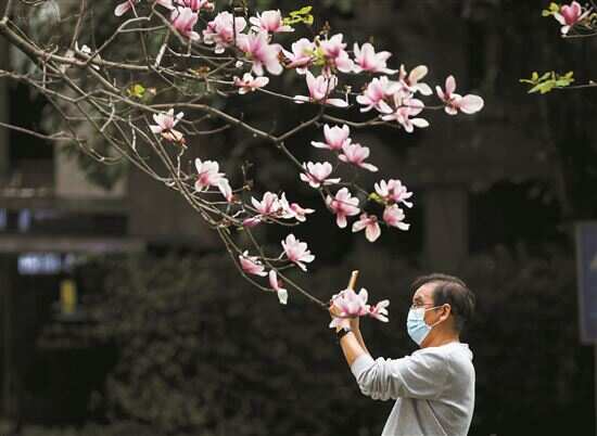 ■随着气温逐步回升,花城广州街头处处鲜花盛开。在滨江东路,满树的繁花吸引了不少市民停下脚步拍照留念。新快报记者 邓迪/摄影报道