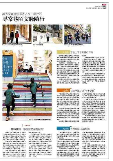 在珠光街各个小学校门外,都可见特色鲜明的宣传栏,其中清水濠小学外一面墙建成富有文化气息的诗书墙,一面墙上有六脉渠图和南园诗社介绍,前行几步便是排排陈列的诗选,“小字写长笺,鳞鸿坐相隔”“雅兴殊未央,旨酒咏思柔”……相传清水濠在宋代开凿之初就承担着水路运输、防洪排涝的功能,鼎盛时期可以由濠涌直接通往大海,不少文人在此结社、把酒言欢、大发诗兴,因此,这条诗书墙将这一历史融入社区空间。