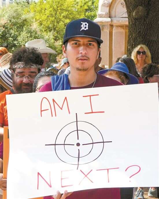 枪支伤害是美国1至44岁人群的五大死因之一。 ■美国民众游行,反对枪支暴力。新华社发