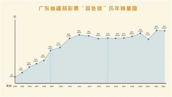 双色球自2003年上市以来,经过20年发展,已打造成了中国福利彩票知名品牌,得到了公众的认可和彩民的欢迎,成为目前中国彩票市场最具竞争力和最有影响力的彩票游戏。双色球2004年在广东发行后,逐步成为广东福利彩票的第一大玩法,品牌形象日益深入人心。2004年至2022年,双色球在广东销售739.74亿元,筹集福彩公益金272.56亿元(含弃奖),中出一等奖2038注,诞生亿元大奖4个,为社会福利和公益事业的发展作出了巨大贡献。