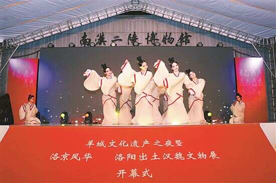 那夜,在南汉二陵博物馆的露天舞台,他们是身穿汉服、合诵《急就篇》的孩童,声如银铃,连叙古今;同台的大学生,舞姿则脱胎于“汉代陶伎乐俑”,裾袖迴雪,连翩络绎。于他们身后展厅,来到广州的244件洛阳文物,正在重现两汉曹魏400余年“煌煌祖宗业”与“古今兴废事”。