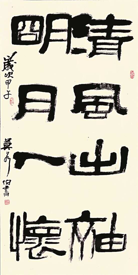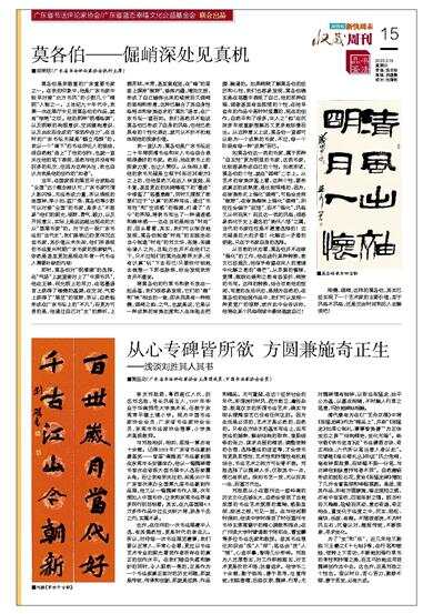 莫各伯是我敬重的广东重要书家之一。在我的印象中,他是广东书家中较早对接“北方书风”的少数几个“精明”人物之一。上世纪九十年代中,我第一次在展厅中见到莫各伯的作品,就有“惊艳”之叹。他的那种“明清格调”,以及明晰的构图意识、空间建构意识,以及由此而生成的“视觉冲击力”,在当时的广东书坛无疑是“鹤立鸡群”的。我以一个“南下”的书法评论人的视线,很自然地“连上”了他的创作,也就一直关注他的笔下表现,虽然与他并没有特别多的私交,但因为这种关注,我也自认为我是他的创作的“知者”。