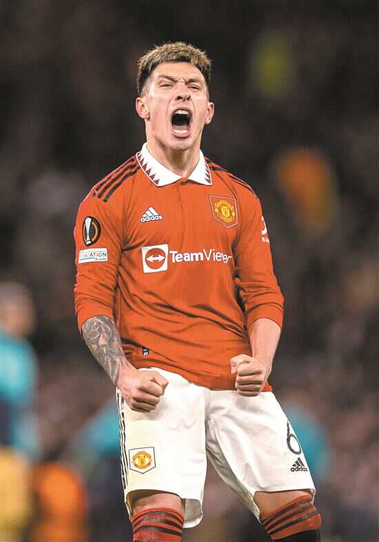■2月23日,曼联队球员利桑德罗·马丁内斯庆祝胜利。 新华社发