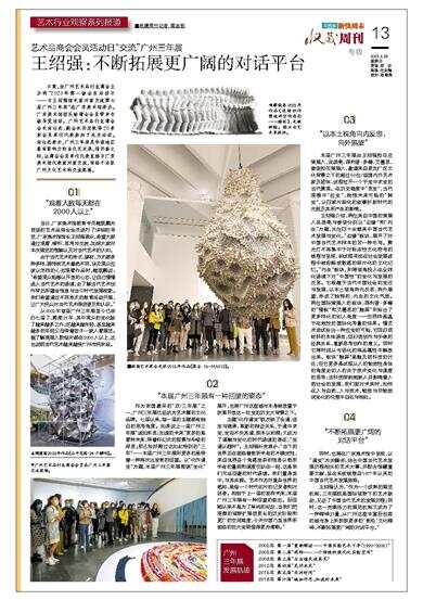 王绍强认为,“作为一个成熟的展览机制,三年展既是国际视野下的艺术联动,见证了中国当代艺术的发展历程;同时,这一充满活力的展览机制又成为了一种精神力量,从广州这座丰富而包容的城市身上所汲取更多的‘前沿’文化精神,不断拓展更广阔的对话平台。”