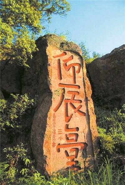 就在山西面的玉禀峰巅,有湛若水题写的,字径两米多,雄劲而儒雅,为全山最大摩崖刻字《仰辰台》,这里或者就是湛若水先生每天早起,仰望满天星辰,纵情放歌的地方。在大字的旁边,还题刻着湛老先生的一首诗:“仰辰台上仰辰遊,一曲歌声彻九州。感得圣恩深似海,老臣早许作巢由。”从诗中我们大可体会到这位理学名家山中书院生活的惬意。在大科峰南的云谷中,有湛老先生另一首摩崖题诗《和王阳明赠方献夫诗》:“千秋云谷还归我,三二羊求作近邻。莫种桃花临水岸,引人来问武陵津。”直将此地当作世外桃源的心态跃然于字里行间。