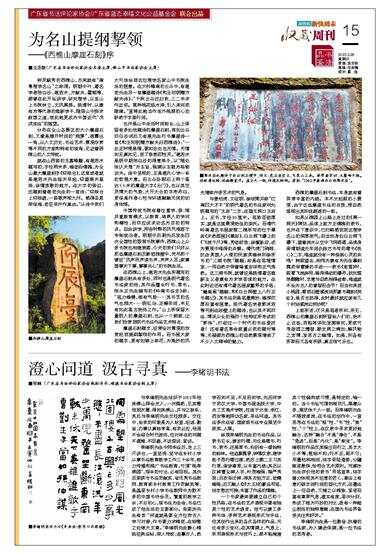 在西樵山上,湛若水先生所题写的摩崖石刻共有多处,同时也是明代著名书法家的他,其作品擅长行书、草书。陈永正先生编写的《岭南书法史》称:“笔力雄健,极有气势……其书艺的名气也颇大……明弘治、正德年间,未见有如此高古绝俗之作。”山上所保留大量明人的摩崖石刻,也从一个侧面,让我们欣赏到明代书法作品艺术特点。