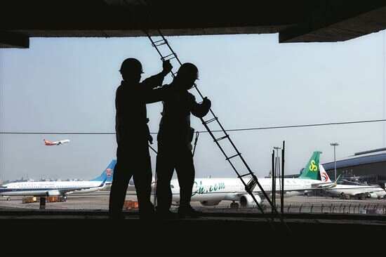 ■广东省广州市白云机场三期扩建工程东四指廊项目现场,建设者们有条不紊地开展施工作业。