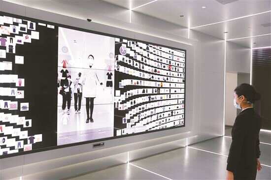 ■唯品会总部大楼,工作人员在展示用AR技术进行实时试衣。