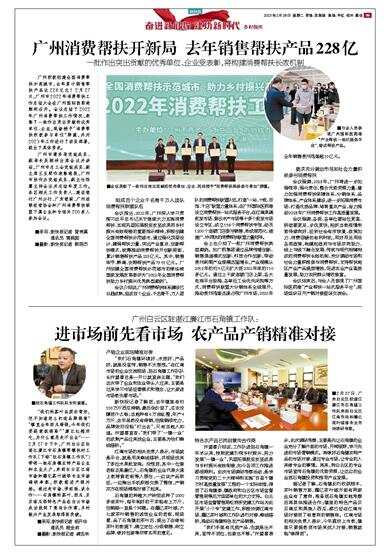 会议介绍说,广州消费帮扶体系建设已日趋成熟,组成百个企业、千名骨干、万人团队的消费帮扶联盟队伍,打造“一站、十批、百馆、千店”联盟力量体系,在广州国际医药港设立消费帮扶一站式服务平台,在江南果蔬批发市场、黄沙水产市场等十多个批发市场设立专区,成立156个消费帮扶专馆,动员1200个连锁门店参与销售,形成规范化、涵盖广、协同快的消费帮扶联盟力量矩阵。