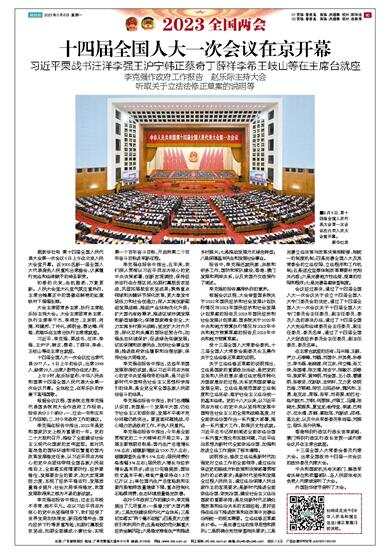 据新华社电 第十四届全国人民代表大会第一次会议5日上午在北京人民大会堂开幕。近3000名新一届全国人大代表肩负人民重托出席盛会,认真履行宪法和法律赋予的神圣职责。