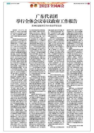 黄坤明指出,探索中国式现代化的广东实践使命光荣,我们要深入贯彻党的二十大精神,落实全国两会部署,在高质量发展上聚焦用力,突出抓好当前经济工作,抓好粤港澳大湾区建设等国家重大战略实施,抓好改革开放关键一招,抓好制造业当家,抓好“百县千镇万村高质量发展工程”促进城乡区域协调发展,书写中国式现代化的广东篇章,奋力在新征程中走在全国前列、创造新的辉煌。