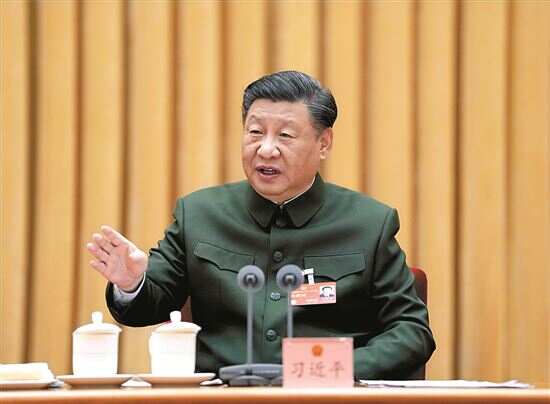 ■3月8日下午,中共中央总书记、国家主席、中央军委主席习近平出席十四届全国人大一次会议解放军和武警部队代表团全体会议并发表重要讲话。新华社发