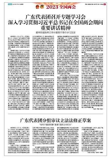 新快报讯 3月8日下午,十四届全国人大一次会议广东代表团召开专题学习会,传达学习贯彻习近平总书记在参加江苏代表团审议,看望参加政协会议的民建、工商联界委员并参加联组会时的重要讲话精神。全国人大代表黄坤明、谌贻琴、王伟中、黄楚平等作学习发言。